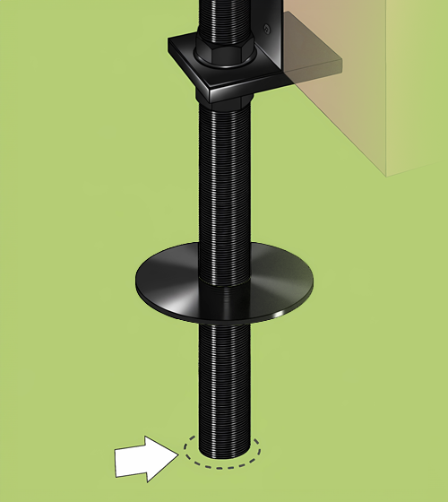 Position the frame over the dug holes and drop into place. The round plate is used forsupport at the bottom of the hole.