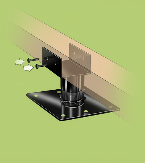 Place the whole device under the frame at equal intervals. Screw the head u channel to the frame. Complete this for the whole frame.
