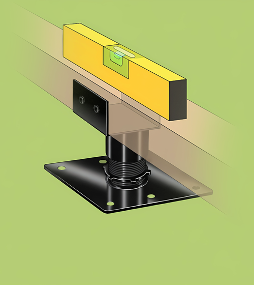 Use a spirit level to check that the frame is level and adjust if necessary,